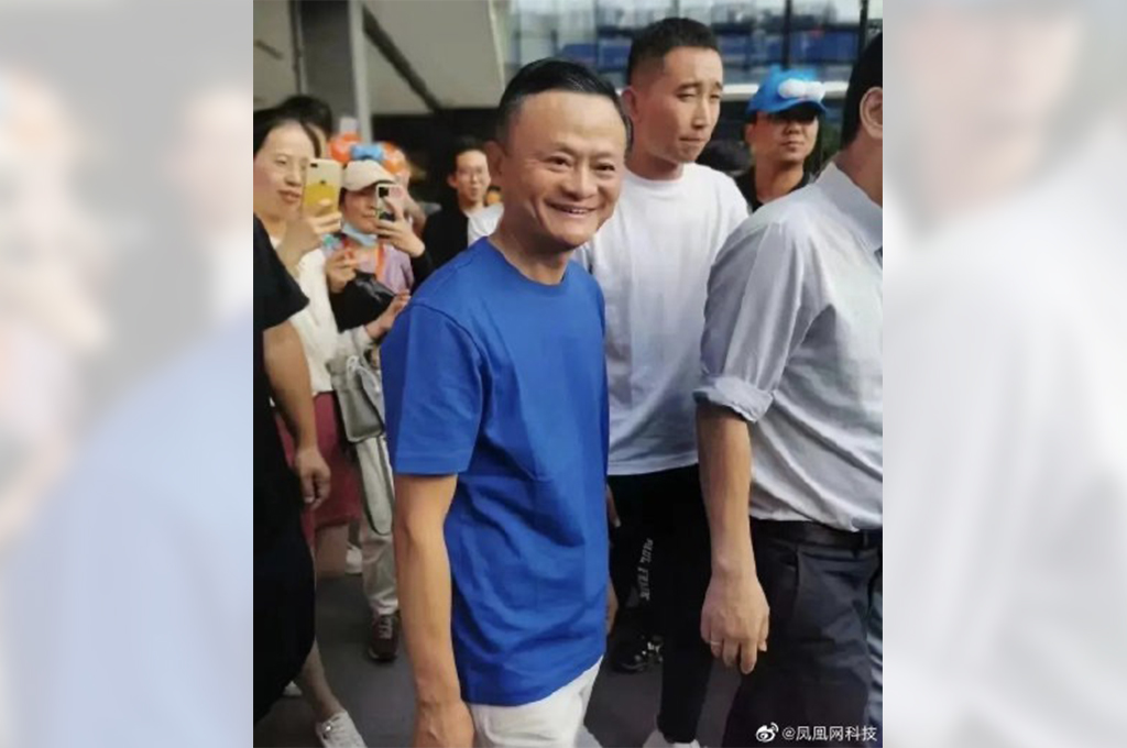 馬雲現身阿里日的照片在微博廣傳,他穿著相當簡便,上身穿著一件藍色T恤,下半身搭配白色長褲,身形明顯比之前更消瘦,不僅兩側鬢角灰白,頭頂上也冒出不少白髮,額頭、眼尾的皺紋都增加不少。