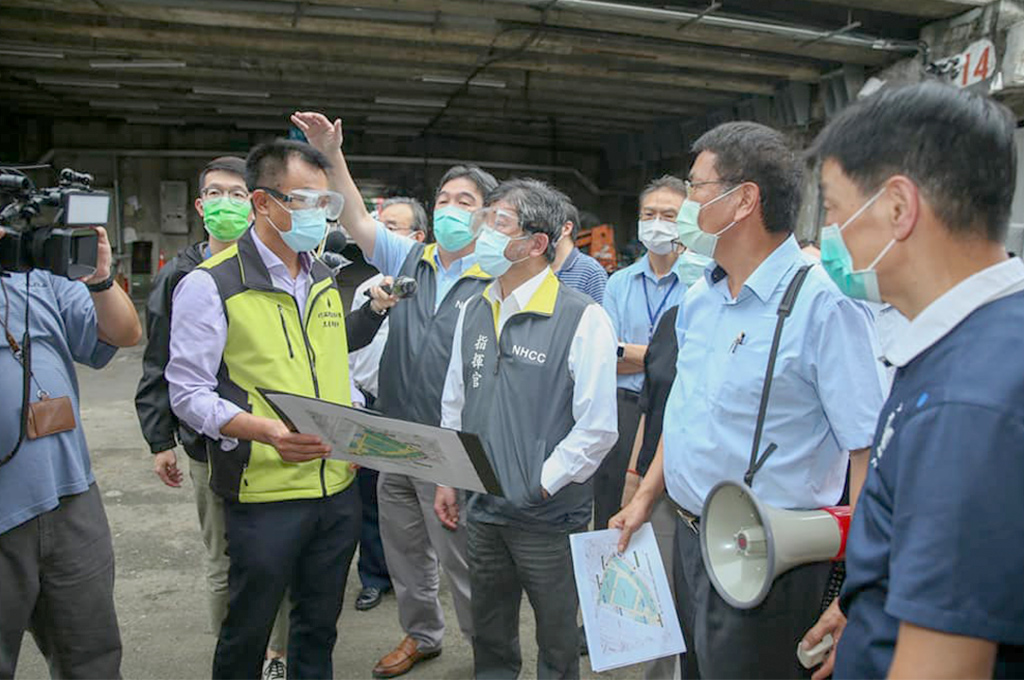 「右下方照片,是我在萬大前進指揮所會議結束後隨手拍的」,王必勝說明,當時CDC首席防疫陳醫師、黃醫師及CDC台北區區管陳醫師,正在跟環南市場人員核對各攤商的實名簽到單,以釐清第二次篩檢確診人員相關位置,影響範圍,並找出市場風險高的熱區。這些防疫醫師都非常專業,在這漫長的抗疫過程中貢獻了非常多的心力,是國家的寶。