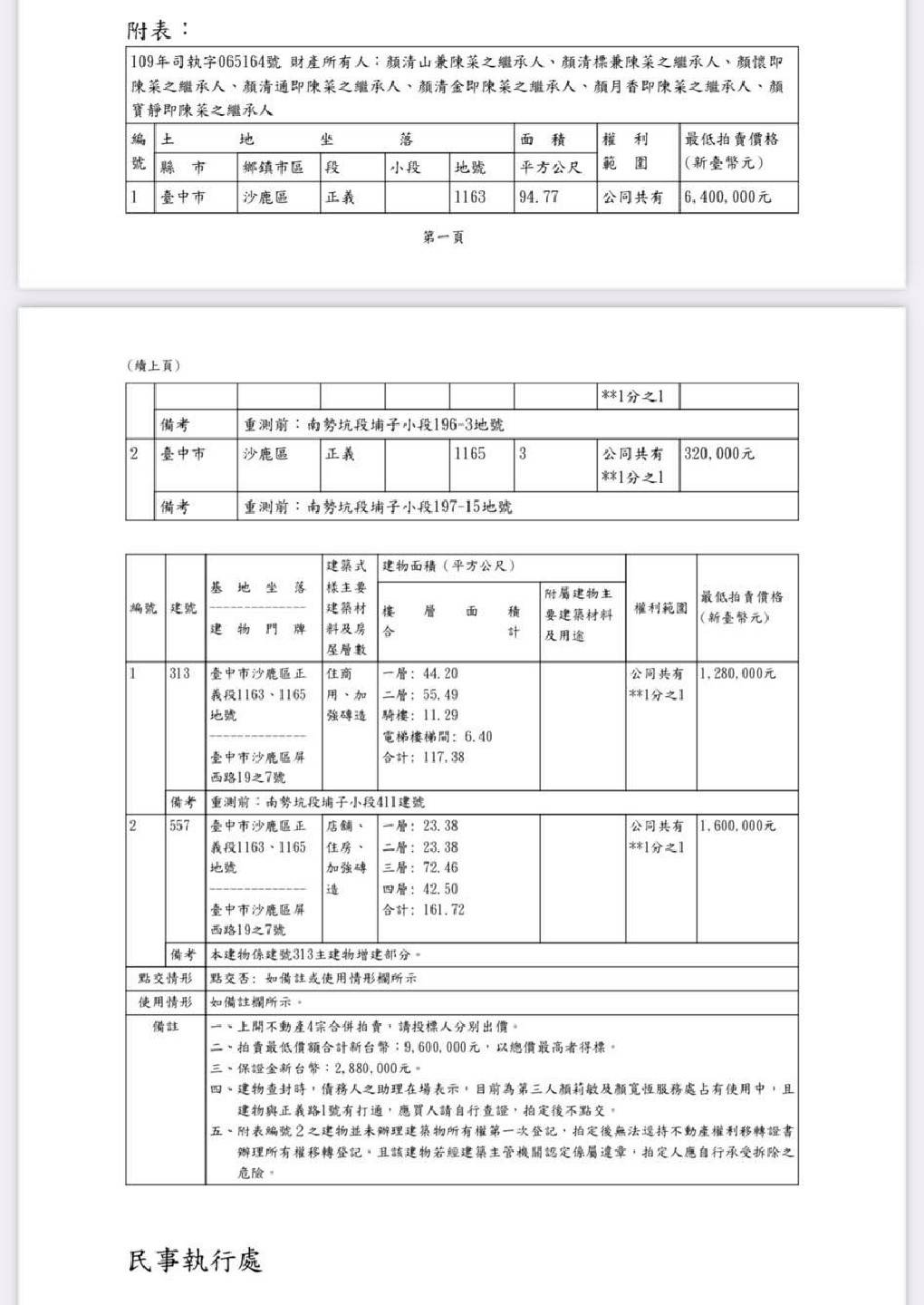 周玉蔻今日在臉書上再貼出新的證據,為台中市地方法院公告的法拍文件,公告中標明為「返還借款強制執行事件」,債權人為國泰世華商業銀行,債務人則列舉了,顏清標在內的顏家一干人等。