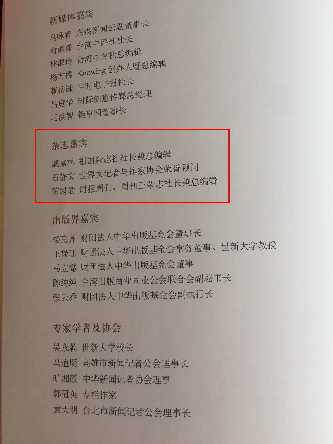 由中國《北京日報》報業集團、旺旺中時媒體集團共同舉辦的「第四屆兩岸媒體人北京峰會」10日在北京登場,中國全國政協主席汪洋會見部分台灣媒體代表,與會過程中不斷宣傳「和平統一、一國兩制」,要媒體朋友一起努力。此舉不僅震撼台灣政壇,更讓不少與會者成箭靶。對此,出席活動的世界女記者與作家協會榮譽顧問石靜文今接受Hit Fm《周玉蔻嗆新聞》訪問時被問及為何遲至今日都沒看到聯合聲明?她也同意應對此進行聯署反對。