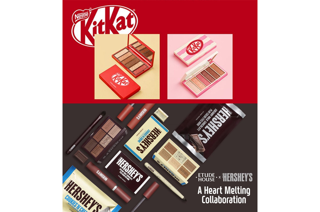2019年ETUDE HOUSE與KITKAT聯名推出眼影盤、2020年與HERSHEY’S合作推出眼影盤和唇彩、刷具。(圖片來源:ETUDE HOUSE宣傳影片截圖)