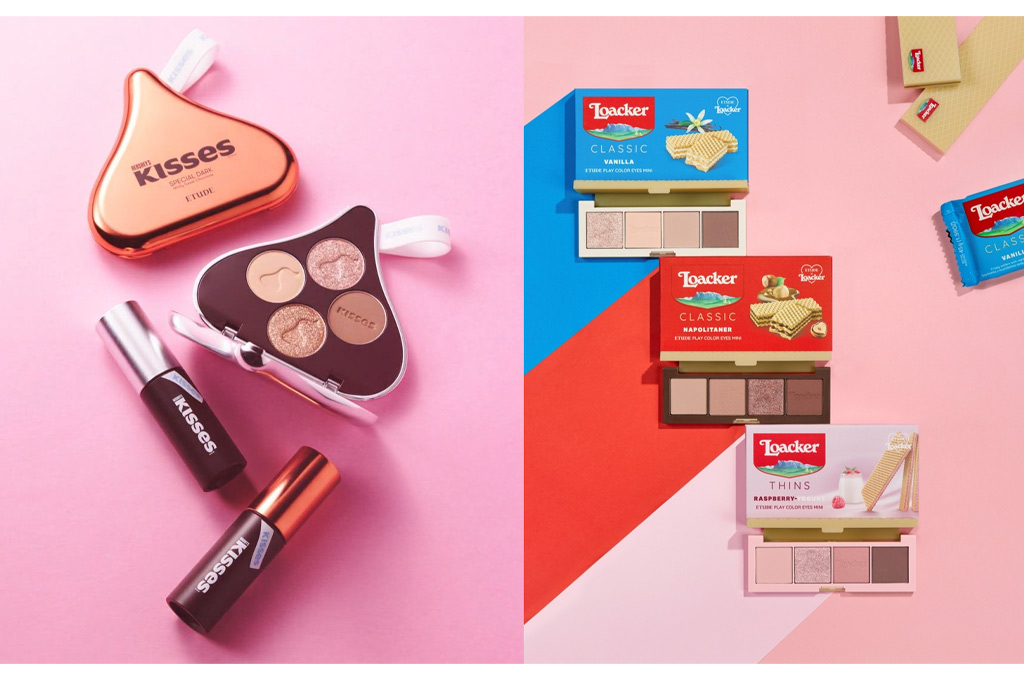 還有近年來多次與零食大廠合作推出聯名系列的韓國品牌ETUDE HOUSE,多次在台灣掀起熱潮。最早2019年與雀巢KITKAT聯名,2020、2021年則二度與HERSHEY’S聯名,2022年則再與義大利威化巧克力餅乾品牌Loacker推出新系列聯名。ETUDE HOUSE如何再現這些零食品牌的包裝,並打造有趣可愛的彩妝似乎成了該品牌消費者最期待的事。