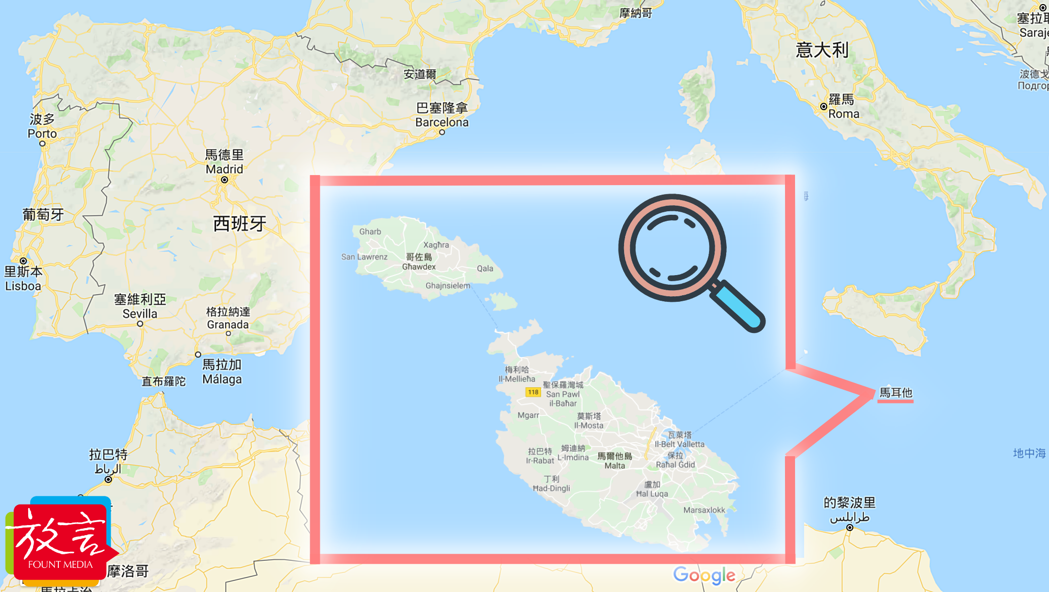 (圖片:馬爾他地域圖,來自Google Map)