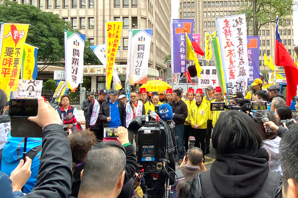新黨主席郁慕明稍早率眾在立法院外抗議綠色恐怖、戒嚴復辟。新黨不分區名單第一名邱毅也到場對支持者喊話「不能讓反滲透法通過!」,必須由下個會期、由新的民意來決定。