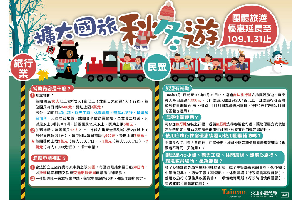 (秋冬旅遊補助加碼延長至1/31,盡情把握最後出遊機會)
