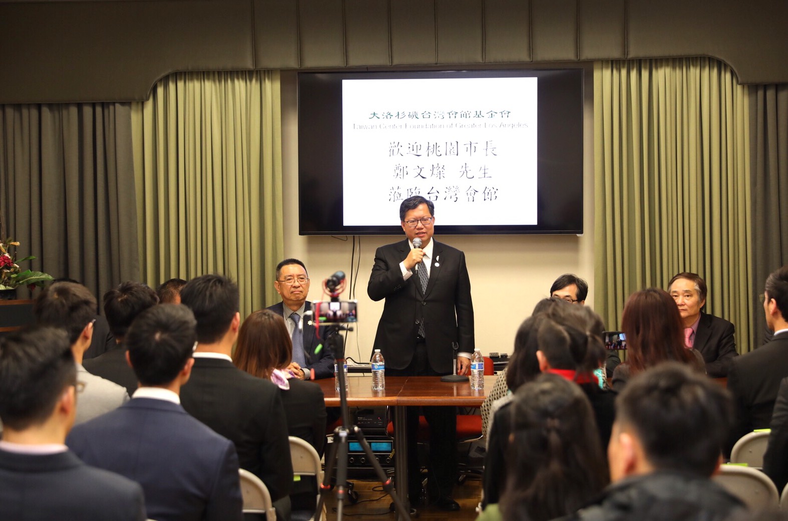 鄭文燦也於會中以「讓台灣走在正確的道路上」為題進行演講,主要講述民主台灣的政治特徵、桃園的多元族群魅力、台美關係等主題,希望國際社會張開雙手歡迎台灣,相信美國代表的全球民主價值能夠支持台灣,讓走在正確道路上的台灣不會孤單,不會被放棄,邁向全球民主共同願景。