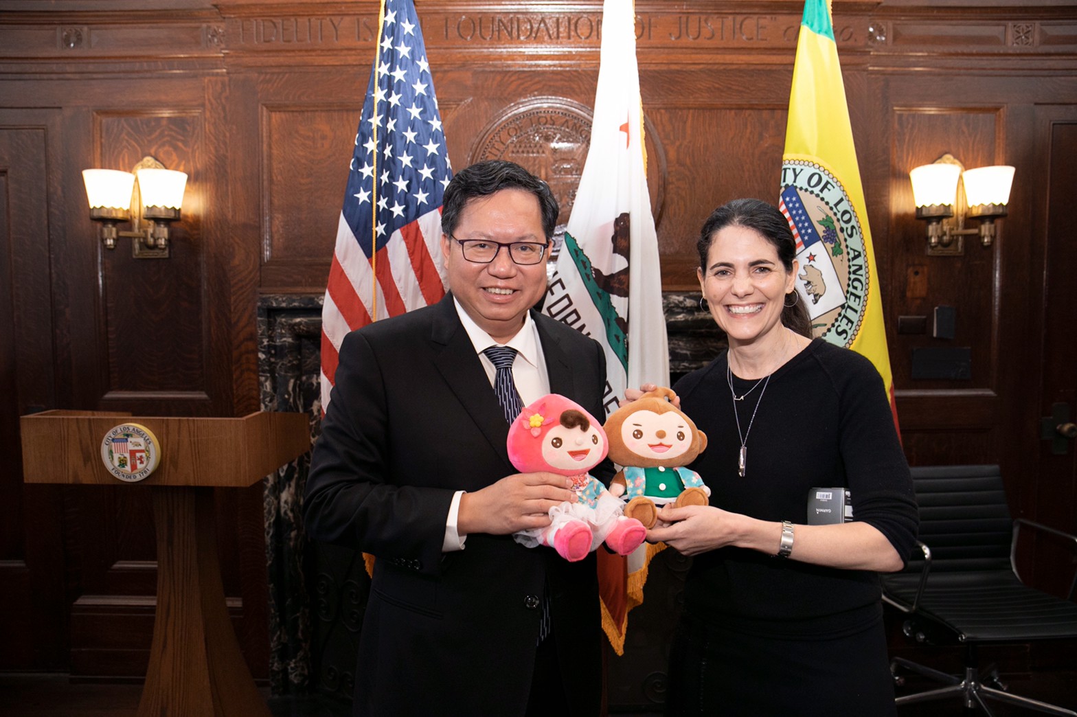 (與洛杉磯市副市長Nina Hachigian互贈禮品)