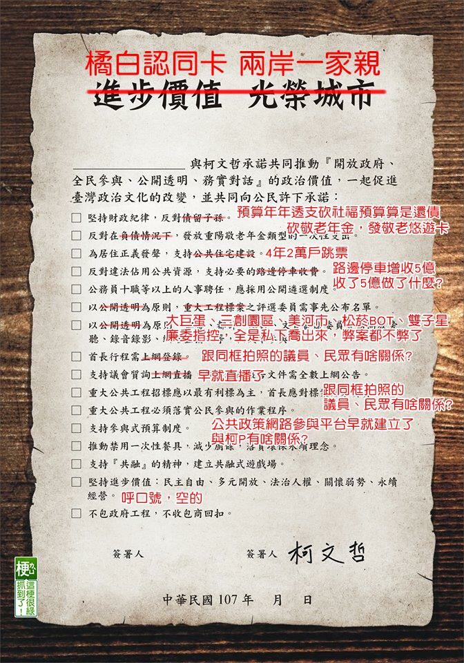 打著「進步價值、光榮城市」的柯文哲認同卡立馬被網友變造:比較一針見血的,像是把「反對在負債情況下,發放重陽敬老年金類型的一次性支出」槓掉換成「砍敬老年金,發敬老悠遊卡」,看這些網友們的梗能不能會心一笑,就看人們有多了解柯文哲了。