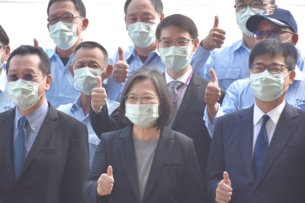 蔡英文總統在國防部長嚴德發、國安會秘書長顧立雄、高雄市長陳其邁、海委會主委李仲威等人陪同下,上午出席「安平級巡防艦首艘安平艦交船及第2艘成功艦命名下水暨35噸級巡防艇交船聯合典禮」。